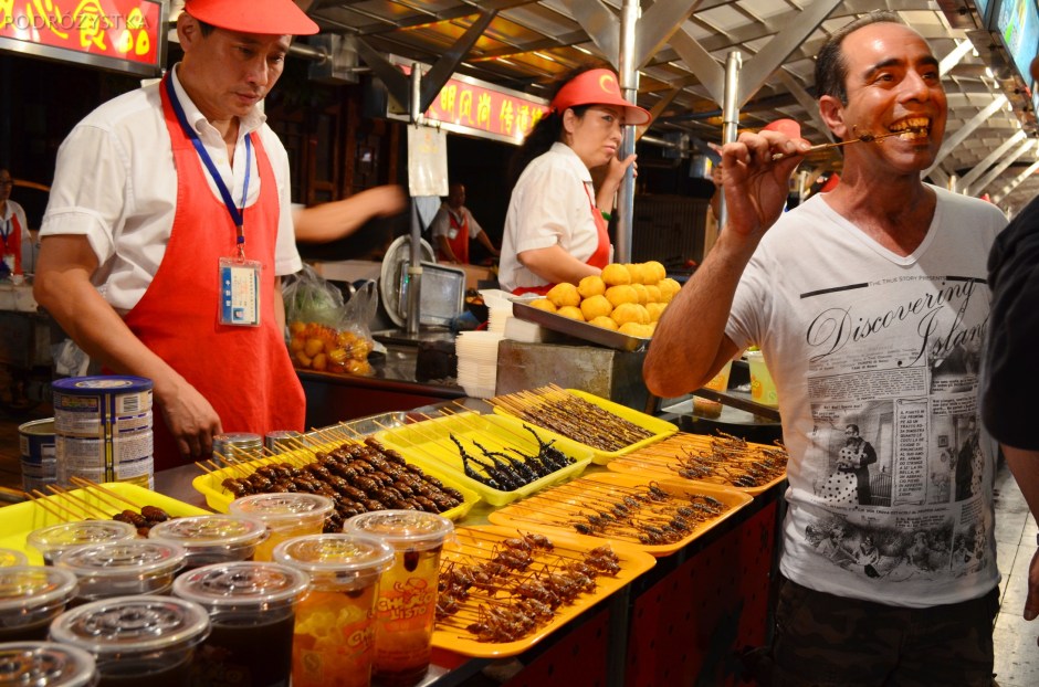 Pekin_II_15_50_size_watermark ← Previous Next → Chiny, Pekin, Night Market na Donghuamen Street, facet próbujący skorpiona