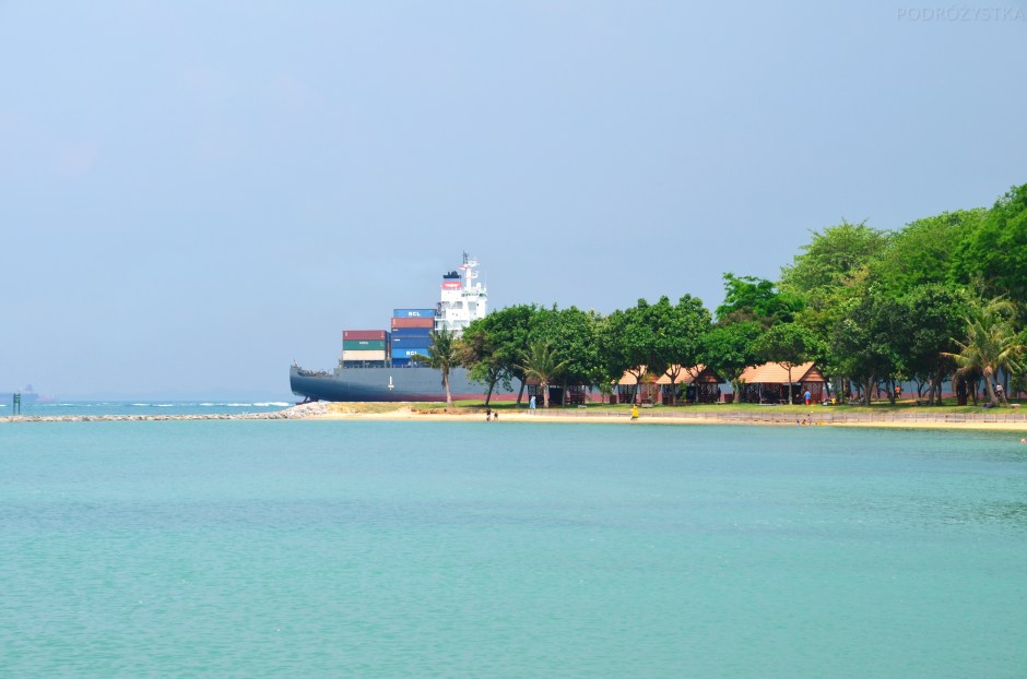 Singapur, wyspa Kusu, kontenerowiec tuż obok plaży