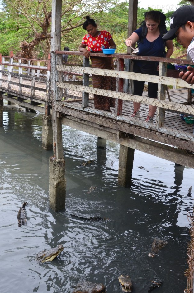 Birma, Yangon, Farma Krokodyli, karmię krokodyle