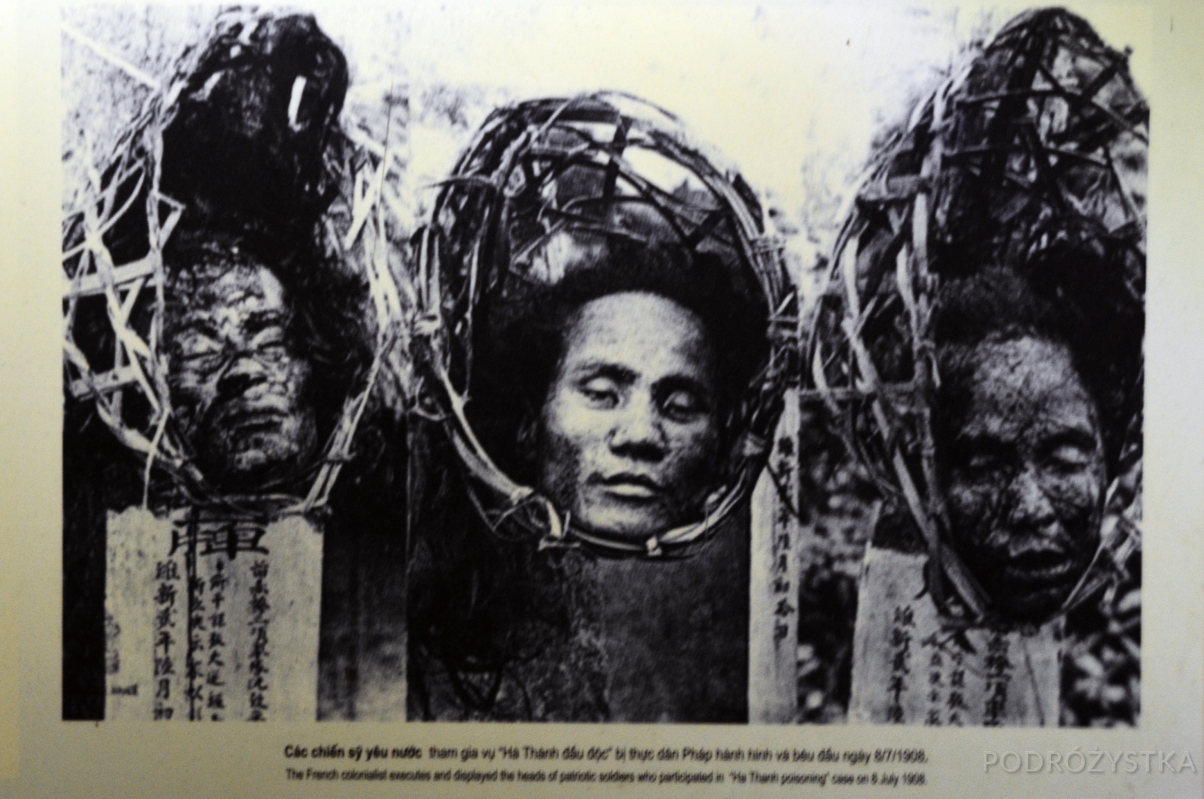 Rankiem mgło-smog nie odpuszczał, ale przynajmniej nie padało. Zwiedzanie rozpoczęliśmy historycznie – od Maison Centrale – zwanego również Hoa Lo Prison. Więzienie, założone u schyłku XIXw, kiedy to Wietnam stanowił część Indochin Francuskich, było miejscem tortur i przesłuchań wietnamskich więźniów politycznych, którzy nagrabili sobie u francuskich kolonizatorów. W czasie wojny wietnamskiej zmienili się właściciele i więźniowie – w niewoli u Wietnamczyków z północy przetrzymywani byli tu zestrzeleni (ale nie zastrzeleni) piloci amerykańscy. Muzeum podzielone jest na dwie części, po jednej poświęconej każdemu z powyższych okresów. Oprócz obrazu nędznych warunków i dowodów okrucieństwa, jakie zdolny jest zadać człowiek drugiej istocie ludzkiej, tylko dlatego, że stanęła po innej stronie barykady, widoczny jest jeszcze jeden aspekt: punkt widzenia zależy od punktu siedzenia. Mam na myśli tutaj epizod z amerykańskimi pilotami, którzy notabene nazwali ten przybytek pieszczotliwie Hanoi Hilton. Podczas gdy międzynarodowe źródła (no dobra, Wikipedia, ale notka poparta źródłem) podają że: