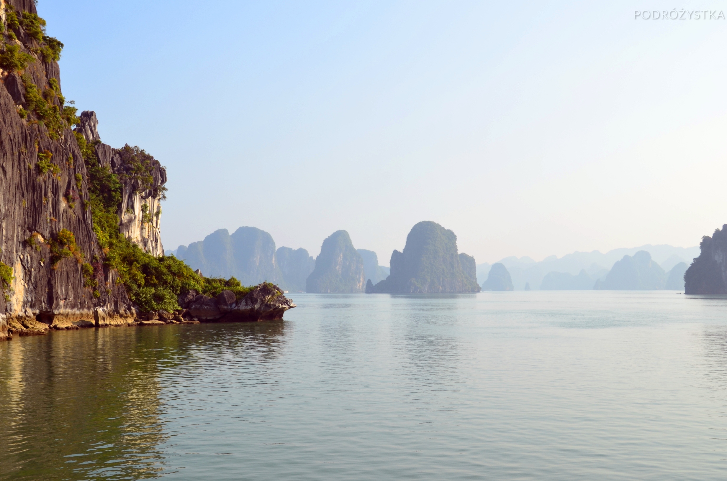 Po drodze znalazło się jeszcze trochę czasu żeby odespać, bo dopiero 3,5 godziny później byliśmy w Ha Long. Wsiedliśmy na statek, który opływał, podpływał, przepływał, obok i pomiędzy skałami wynurzającymi się z głębin. Halong Bay to ogromny obszar zatoki, na którym roi się od skał, wysp i wysepek, tworzących przepiękny, bajkowy widok. Poszczęściło nam się także z pogodą, po kilku mglistych dniach w końcu ujrzeliśmy słońce.