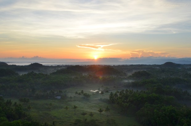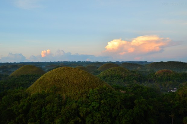 Chocolate Hills, jak już napomknęłam w poprzednim wpisie tutaj, to niewysokie formacje geologiczne, które swoją nazwę zawdzięczają nie drzewom kakaowca, a trawie, która brązowieje na ich powierzchni podczas pory suchej, nadając brązowawy kolor. Pokrywają spory obszar w centralnej części wyspy. Za 50 PHP (~1.3 SGD; ~3,7 PLN) wchodzimy taras widokowy i cieszymy wzrok i duszę promieniami budzącego się nad pagórkami słońca, wyśmiewając okrutnie „gwiazdy” Instagrama, które swoimi wygibasami na barierce pretendowały do nagrody Darwina.