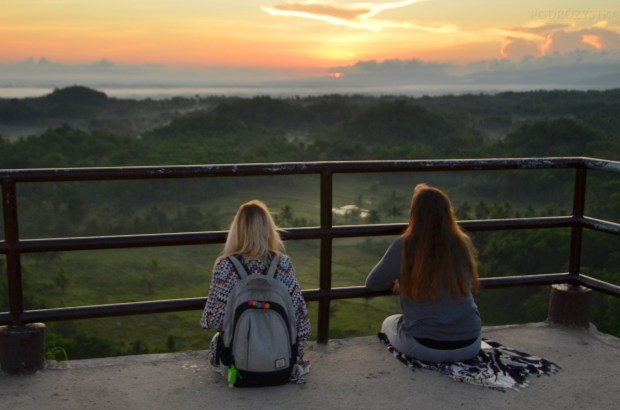 Chocolate Hills, jak już napomknęłam w poprzednim wpisie tutaj, to niewysokie formacje geologiczne, które swoją nazwę zawdzięczają nie drzewom kakaowca, a trawie, która brązowieje na ich powierzchni podczas pory suchej, nadając brązowawy kolor. Pokrywają spory obszar w centralnej części wyspy. Za 50 PHP (~1.3 SGD; ~3,7 PLN) wchodzimy taras widokowy i cieszymy wzrok i duszę promieniami budzącego się nad pagórkami słońca, wyśmiewając okrutnie „gwiazdy” Instagrama, które swoimi wygibasami na barierce pretendowały do nagrody Darwina.