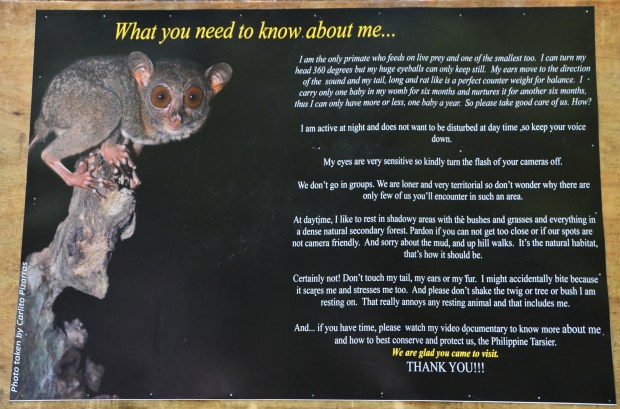 Podobnie jak z orangutanami na Borneo, chciałyśmy mieć pewność, że odwiedzamy miejsce, które postępuje ze zwierzętami etycznie i skupia swoje wysiłki na przywróceniu ich do środowiska naturalnego. Po przekopaniu internetu, jedynym uczciwym miejscem na Boholu okazało się Philllipine Tarsier and Wildlife Sanctuary, Corella. Mała salka wprowadza nas w historię i charakterystykę wyraków, a także problemy z którymi mierzą się, by przetrwać. Następnie można odbyć krótki spacer z przewodnikiem, który pomaga nam wypatrzeć zwierzątka na drzewach, napominając o zachowanie ciszy i wyłączenie lamp błyskowych. Tarsiery nie są sadzane na gałązkach, by pięknie prezentować się do zdjęć, więc istnieje duże prawdopodobieństwo, że nie zaprezentują nam się w całości. Mi to nie przeszkadza – wolę mieć świadomość, że moja chęć zobaczenia ich na żywo, zostawia najmniejszy z możliwych odcisk na ich życiu.