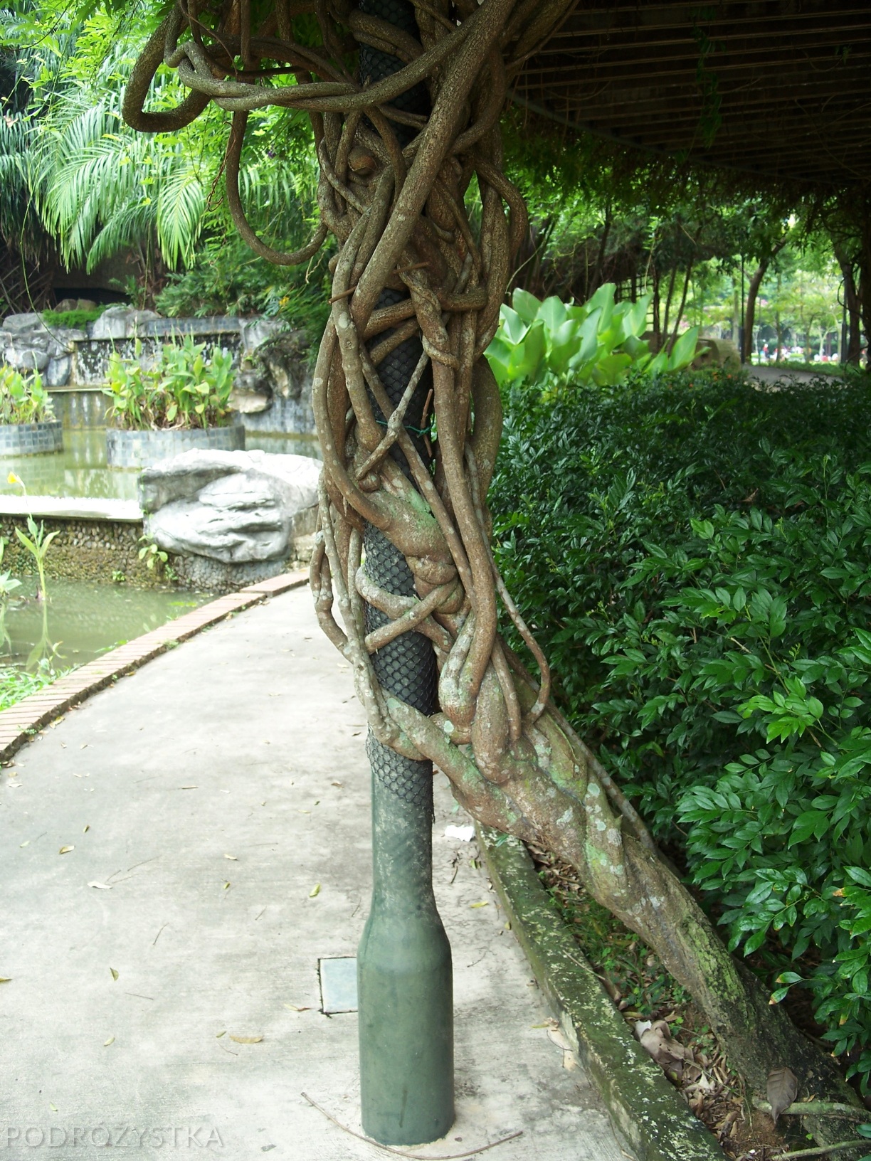 Singapurczycy absolutnie nie lubią się przemęczać (ale o tym w następnych odcinkach) i w weekend typowe jest dla nich coś, co my nazwalibyśmy piknikiem. Z tym że oni biorą całe siaty jedzenia, napojów, dania na wynos, siadają grupami na wielkich kocach i biesiadują. Poniżej udało mi się uchwycić nawet taką parkową imprezę urodzinową w Toa Payoh Town Park. Na wcześniejszych zdjęcia często pojawiały się palmy (czy też palmopodobne drzewka), które tutaj są tak zwyczajne jak nasze swojskie klony czy lipy, a ja namiętnie fotografuję wszystkie inne „dziwne” rośliny (kilka zamieszczam poniżej, jeśli ktoś zna nazwy, niech się podzieli wiedzą!).